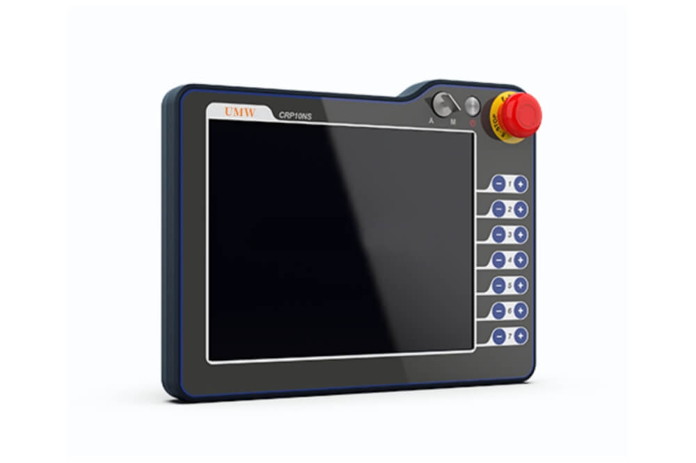 The teach pendant is a handheld device used to program the robot. It is easy to use, even for beginners.